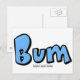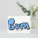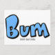 Bum in faulblauen Buchstaben mit schwarzer Kontur.