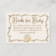Bun in the oven baking baby shower book request enclosure cards. Hand drawn cinnamon bun wavy border baby shower books for baby enclosure cards, baking baby shower invitations books for baby, grand millennial baby shower book request enclosure cards