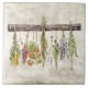 Rustic bunches of dried wildflowers in pastel colors hanging on a stick tied with twine. Shabby chic decor for your home. Perfect for your country French or cottage farmhouse kitchen. Faux texture background.