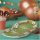 Bunco Papierwaren, zum eines Extraentwurfselements Ihrem folgenden Bunco Party hinzuzufügen. Eigenschaften reizender Wreath enthalten von den Bohemischen Artfedern und -Blumen. Grüner Steigungshintergrund mit dem Text "Bunco". Vervollkommnen Sie für dienende Nahrung an Ihrem folgenden Bunco Ereignis.
