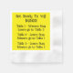Genießen Sie Ihren Snack oder Cocktail und stoppen Sie die Verwirrung, was passiert, wenn die Runde vorbei ist. Diese Bunco Serviette weist Sie an, für die nächste Runde am richtigen Ort zu sein. Hintergrundfarbe und Text können geändert werden. Vollständig anpassbar für Ihr Farbschema und Ihre Tabellennummerierung. Sehen Sie mehr BUNCO Themenartikel in unserem Shop.