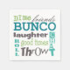 Fun Party Accessoire für Ihre nächsten Bunco Girls Nacht out oder Spendenaktion, Moderne Typografie von Wörtern, die Bunco Spieler gemein. Würfel, Freunde, Bunco, Lachen, rollen gute Zeiten, Chat und werfen.