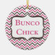 Ist hier ein rosa und grauer grafischer Bunco Entwurf des Spaßes, der ein Zickzack Hintergrundmuster kennzeichnet. Text las Bunco Küken. Großes Geschenk für einen Geburtstag, Hosteß, Feiertag oder einen Preis.