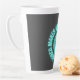 Diejenigen, die das Spiel von Bunco wird Liebe dieses Retro inspiriert latte Tasse-Design mit roten Würfeln auf einem türkisfarbenen Zentrum, neon aqua "Bunco macht meine Welt runden" Text auf dunkelkalkboard grauen Hintergrund.