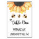 Bunco Sunflower Table Card 1 bis 5 Tischnummer