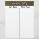 Bunco Tally Sheet - Schwarzer und goldener Streife