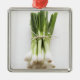 Bündel Frühlingszwiebeln auf weißem hackendem Ornament Aus Metall