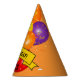 Farbenfrohe Ballons mit Konfetti zentrieren sich auf diesem konischen Party mit Vorlagentext als Teil des Designs auf einem orangen Hintergrund. Füllen Sie die Vorlagenfelder mit Ihrer Feier und Ihrem Namen aus, entfernen Sie den Namen oder klicken Sie auf Anpassen, um eine Schriftart, Farbe und Größe auszuwählen, die Sie möchten.