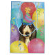 Herzlichen Glückwunsch zum Geburtstag mit diesem niedlichen Design mit einem niedlichen, Party-Hut-Hut-Welpe Basset Hound umgeben von bunten Ballons, Konfetti und Streamern.