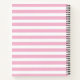 Ein Wendelheft, das als personalisiertes Babyduschenbuch verwendet werden kann und auch für andere Zwecke geeignet ist. Set auf rosa und weiß gestreiftem Hintergrund. Ein weißer Rahmen mit einem rosa Rahmen, der oben mit dem personalisierten Text überlegt ist. Im Rahmen eine Illustration eine Mutter und ein Baby Hase stehend zusammen. Gelbe Gänge im Hintergrund. Whimsikale Schmetterlinge flattern herum.