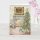 Nestled in a cozy Victorian room, with candles and candy canes, bunnies relax by the fireplace and sparkling Christmas tree. Excited to open their gifts, one bunny is very curious to see what is in those beautifully wrapped packages. Another rabbit reclines in a comfortable chair with a cozy blanket. A beautiful painting of a deer family is framed above the fireplace adorned with greenery and lights.