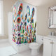 Dieser Duschvorhang hat künstlerische Banden darauf.