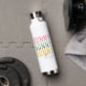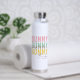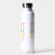 Bunny Babe Niedlich Modern Girly Oaster Personalisiert Water Flasche zeigt den modernen Text "Bunny Bunny Bunny Babe" in rosa, türkis und gelb Typografie und personalisiert mit Ihrem Namen durch das Editieren des Textes in der bereitgestellten Textfeld. Von Evco Holidays entworfen www.zazzle.com/store/evcoholidays