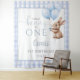 This charming 1st birthday backdrop features a cute bunny holding balloons and a blue gingham background. Designed by Thisisnotme©