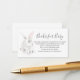 Eine Reservierungskarte für Babydusche. Mit einem Aquarellkaninchen und einem Gedicht: "EINE KLEINE ANFRAGE, HOFFEN WIR NICHT ZU SCHWIERIG BITTE BRINGEN EIN BUCH ANSTATT EINER KARTE, SIE WERDEN DAS BUCH CHERISIEREN, GUT LIEBT ODER NEUE BITTE UNTERZEICHNEN SIE DIE INNEN MIT EINER BOTSCHAFT VON IHNEN!"