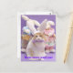 Bubba Kätzchen in weißem Fell, eine Lavendelbug Krawatte und Kaninchenohren.  Der Text ist anpassbar.