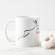 Sonnenhase. Ein stilisiertes Kaninchen, das springt, um viel Glück zu wollen. Design auf Tasse mit weißer Keramik. Ideal für Chinesisch Neujahr des Kaninchens oder Geburtstag (Menschen geboren im Kaninchenjahr).