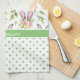 Aquarellfarbene Ohrmuster mit bunten Blume, Ostereiern und grünen Polka-Punkten. Individuelle Name