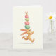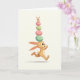 This card shows a brown bunny with long ears and a fluffy white tail hurrying across a soft, creamy background 🐇. Its bent arms and wide eyes give it an eager, caring look, as if it’s rushing to bring a small surprise to someone special. Balanced on its head is a tall stack of four pastel eggs in pink, yellow, and mint green, decorated with stripes and polka dots. Sitting on the very top is a tiny bunny companion wearing a simple little cap, reaching out with open paws as if sharing a delighted, friendly moment 🐰. The gentle shading and smooth color transitions make the pair look rounded and touchable, while the empty backdrop keeps all attention on their shared mission. A short Easter greeting appears near the top in a soft spring color, with a smaller line of text tucked below it in a lighter tone. Beneath the running bunny, a faint gray shadow stretches along the ground to anchor the motion.