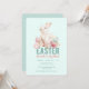 Dieser lustige Osterbrunch und die Eizelljagd laden mit dem Wort "Easter Brunch & Egg Hunt" zum vergnüglichen Abendessen ein. Alle Einladungsdetails befinden sich direkt unten auf einem hellen, weißen Hintergrund. Die Rückseite ist eine koordinierende Aqua-Blau-Farbe.