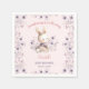 Girl Baby Shower Napkins mit einem hübschen Baby-Hasen-Mädchen in weichen violetten Blumen und rosa & lila Text auf dem hellrosa Hintergrund. Diese Servietten sind perfekt für eine zauberhafte Babydusche mit Federkern. Kate Eden Art