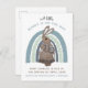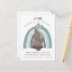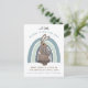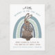 Whimsical niedliche Waldland illustrierte Hasen-und Regenbogenschwangerschaft Postkartenverkündung in pastellfarbener Blues und braun.