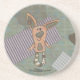 Niedlicher, primitiver Hase auf Patch arbeiten Stil Hintergrund. Originelles Design von Christie Black von Kreationen aus dem Herzen.