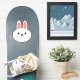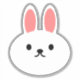 Niedlicher, weißer Cartoon Hasen Kopf mit großen rosa Ohren und einem hübschen Gesicht.