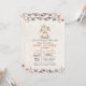 Auf dieser Einladung wird ein bezaubernder Hase mit Blumenelementen vorgestellt. Rosa- und neutrale Grautöne mit einem rosa Hintergrund.