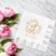 Bunny Rabbit Butterfly Floral Wreath Happy Oaster Foil Napkins Real Foil Stamps Papier Napkins enthält den Text "Happy Oaster" in eleganter Schrift Typografie mit einem eleganten Blumenkranz, einem Osterhasen mit einem Schmetterling auf der Nase und personalisiert mit Ihrem Namen oder benutzerdefinierten Text unten. Ideal, um Ostern stilvoll zu feiern. Erstellt von Evco Studio www.zazzle.com/store/evcostudio