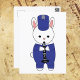 Magst du Kaninchen? Magst du niedliche Postkarten? Eine bezaubernde Postkarte mit einem Hasen, der die Klarinette in einer blau-weißen Marschband-Uniform spielt.