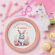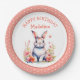 Bunny Rabbit in Blume Happy Birthday Personalize Pappteller