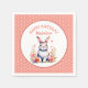 Ein süßes kleines Hasen umgeben von rosa und korallenfarbenen Blume Aquarellbilder personalisierte Geburtstagsfeier-Servietten für ein kleines Mädchen.
