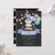 This cute boy's birthday invitation features a bunny rabbit looking out of a magician's hat with faux/fake gold stars, bunting flags, and colorful balloons in watercolor on a dark gray background. The reverse side features a black background with polka dots. Personalize for your needs. You can find more matching products at my store.