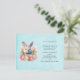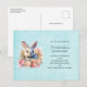 Birthday party invitation postcard with a watercolor image. A white gray bunny rabbit surrounded by a garland of pink and peach roses. For bunny lovers and Easter themes and birthdays and showers.