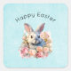 Bunny with a Garland of Roses Cute Easter Quadratischer Aufkleber