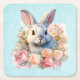 Paper (sturdy pulp board) coasters with a watercolor image. A white gray bunny rabbit surrounded by a garland of pink and peach roses. For bunny lovers and Easter themes and birthdays and showers.