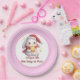 Cute bunny in a red Santa hat and scarf holding a star-shaped cookie. A heartwarming Christmas illustration for kids’ products and Christmas gift.