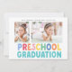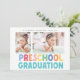 Farbige Mehrfarbige Text 2 Foto Vorschulabschlusspartei digital verfügbar und gedruckt. Ersetzen Sie einfach die beiden Fotos mit Ihren eigenen und personalisieren Sie Ihre Party-Details auf der Rückseite. Der Abschluss der Vorschule ist im Set moderne mehrfarbige Briefe.