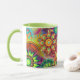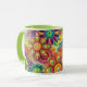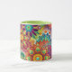 Bunte abstrakte Blumen-Kaffee-Tasse voll aller Farben, Limonen Grüns, Rosas, Lila, Blues und Rottöne!