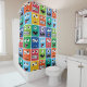 Buntes albernes Monster-Gesichts-Monster-Muster scherzt Duschvorhang. Themenorientierter Badezimmerdekor des Monsters für Kinder. Rotes, orange, gelbes, grünes, blaues und lila Monster stellt im quadratischen Muster gegenüber, das diesen Duschvorhang bedeckt. Eine und zwei mit Augen Monster mit albernen Ausdrücken in einem Spaßmuster.