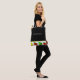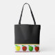 Taschentasche des Spaßlehrers getan im Schwarzen, mit einem weißen Band, entlang der Unterseite, mit Gelb, Grün und roten Äpfeln. Weißer Text ist bereit, für selbst oder für Ihren Lieblingslehrer zu personifizieren.