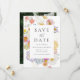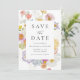 Verkünden Sie Ihren Hochzeitstermin mit dieser romantischen floralen Hochzeits-Save-the-Date-Karte, die mit einem handgemalten Blumenrand in zarten Schattierungen von Rosa, Rosé, Blau, Gelb und warmem Orange gestaltet ist, der durch natürliches Grün für eine frische, garteninspirierte Ästhetik sanft akzentuiert wird. Der botanische Rahmen schafft eine elegante und dennoch einladende Präsentation, während Ihre Namen und das Hochzeitsdatum in der Mitte in einer eleganten Kombination aus klassischer Serifenschrift und zarter Schreibschrift dargestellt werden. Die Rückseite zeigt Ihr vollflächiges vertikales Verlobungsfoto, wodurch Ihr Bild eine kühne, moderne Aussage macht, die sich schön von den weichen Blumen auf der Vorderseite abhebt. Ideal für Frühlings- und Sommerhochzeiten, Gartenzeremonien, Landgüter und Paare, die nach farbenfroher floraler Hochzeitspapeterie mit einer zeitlosen und persönlichen Note suchen,