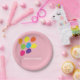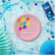 Diese niedliche Geburtstagsfeierplatte zeigt eine Grafik eines Straußes bunter Ballons, die im Wind schwingen. Der Hintergrund ist ein weiches Rosa, das es perfekt zum Geburtstag eines kleinen Mädchens macht.