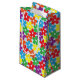Eine Geschenktasche mit bunten Blumen auf einem hellblauen Hintergrund. Sie können die Größe der Blumen und die Hintergrundfarbe auf eine einfache Art besonders anfertigen.