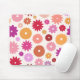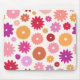 Farbenfrohes Blumenmuster in Gelb, Orange, Rosa, Lila und Rot auf cremefarbenem Hintergrund.