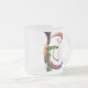 Initiale mit extravaganten Locken in der glasigen Beschaffenheit, verziert mit einer schönen dunklen lila Callalilie. Eine einzigartige Weise, eine Tasse zu personifizieren!