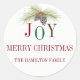 Bunte FREUDE mit Kiefernniederlassungen, Kiefernkegeln und personalisiertem klassischem rundem Aufkleber der Feiertagsbeeren.
