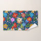 Moderne, farbige Blume, nahtlos in dunkelblauem Hintergrund