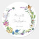 Helle, farbenfrohe Spring Wildblumen Hochzeitsaufkleber mit schönen Schmetterlingen und hellrosa, grün, weiß, lila und blau wilden Blume.